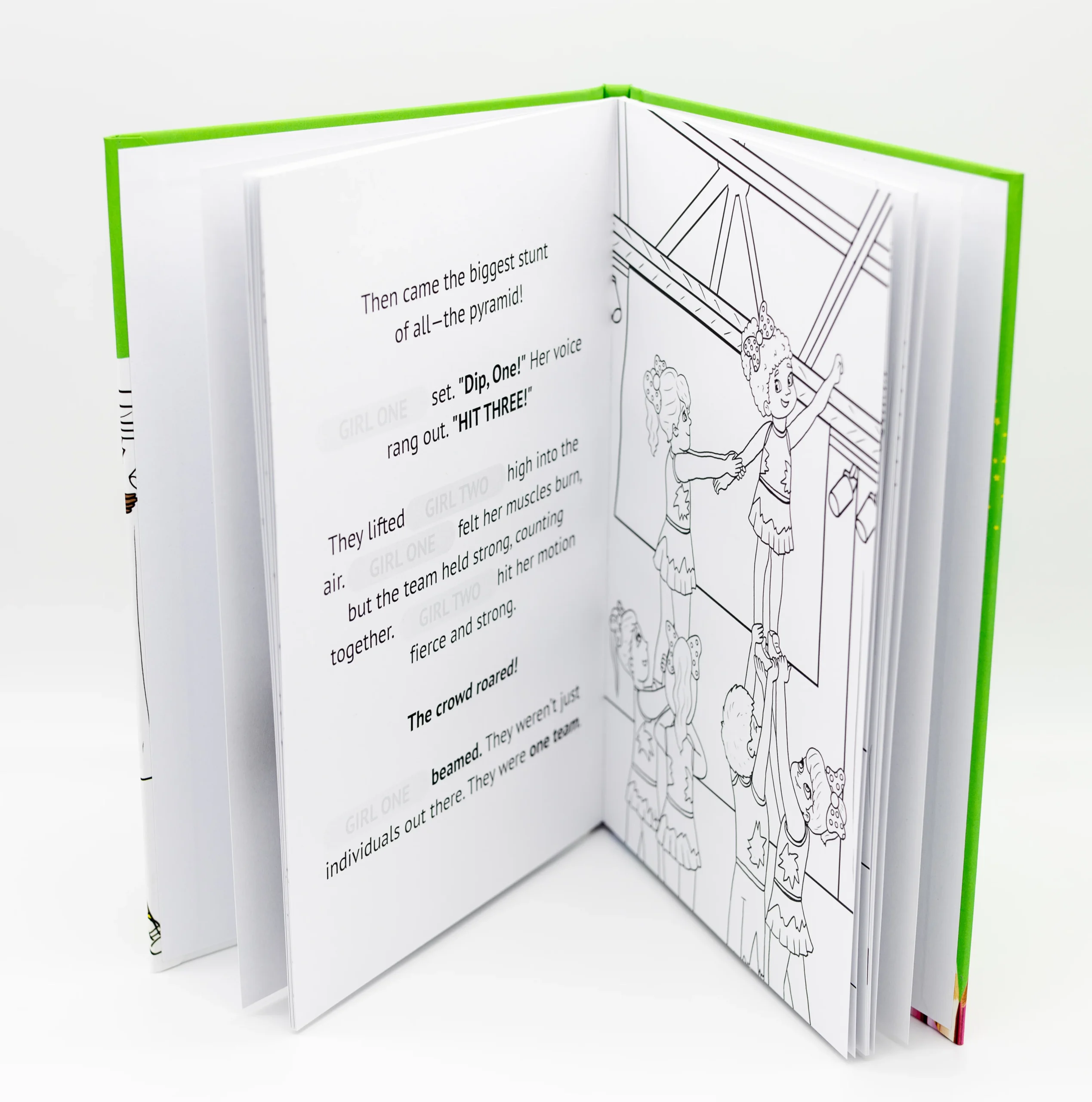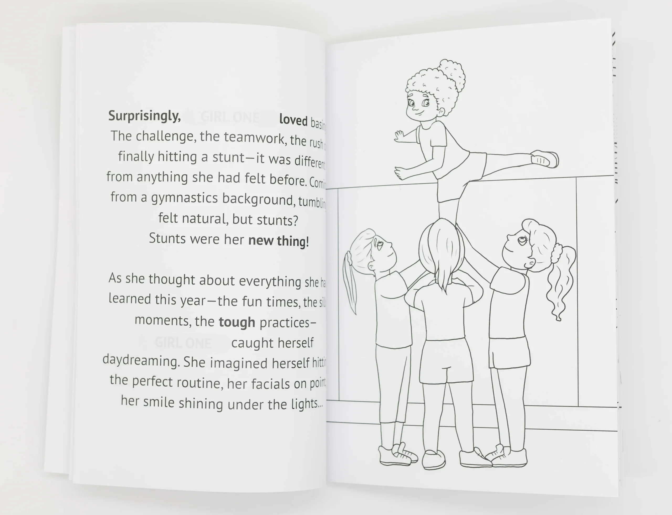 YOUR main character has only just started cheerleading this year, and now it’s time for their first big performance. With bright lights, a massive crowd, and a routine full of tumbles and stunts, she feels excitement… and also nerves. What if she forgets the moves? What if she lets the team down? But when the music starts and the team comes together, your character discovers that being brave doesn’t mean going it alone—it means doing it together.