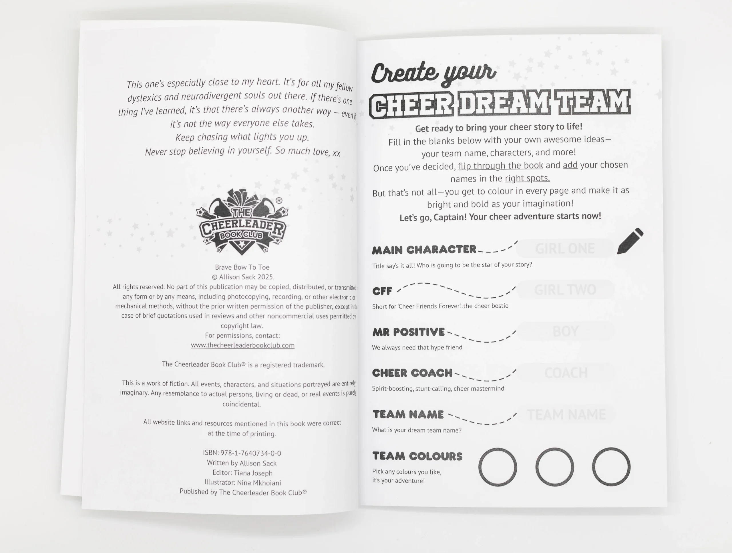 Extras: Spot the Difference game + Secret Book Club password for downloadable cheer activities