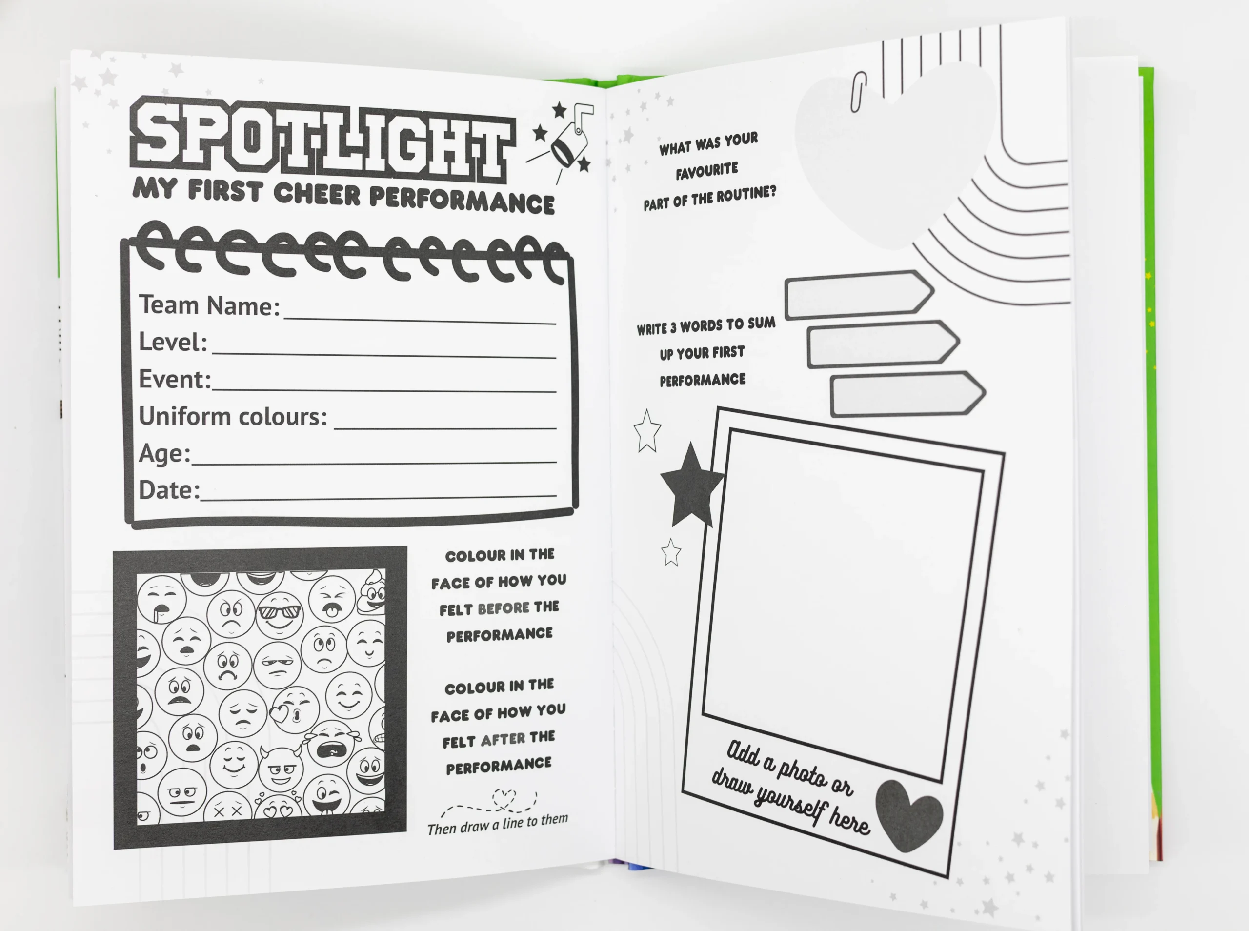 Colour in illustrations to bring the world of cheerleading to life.
