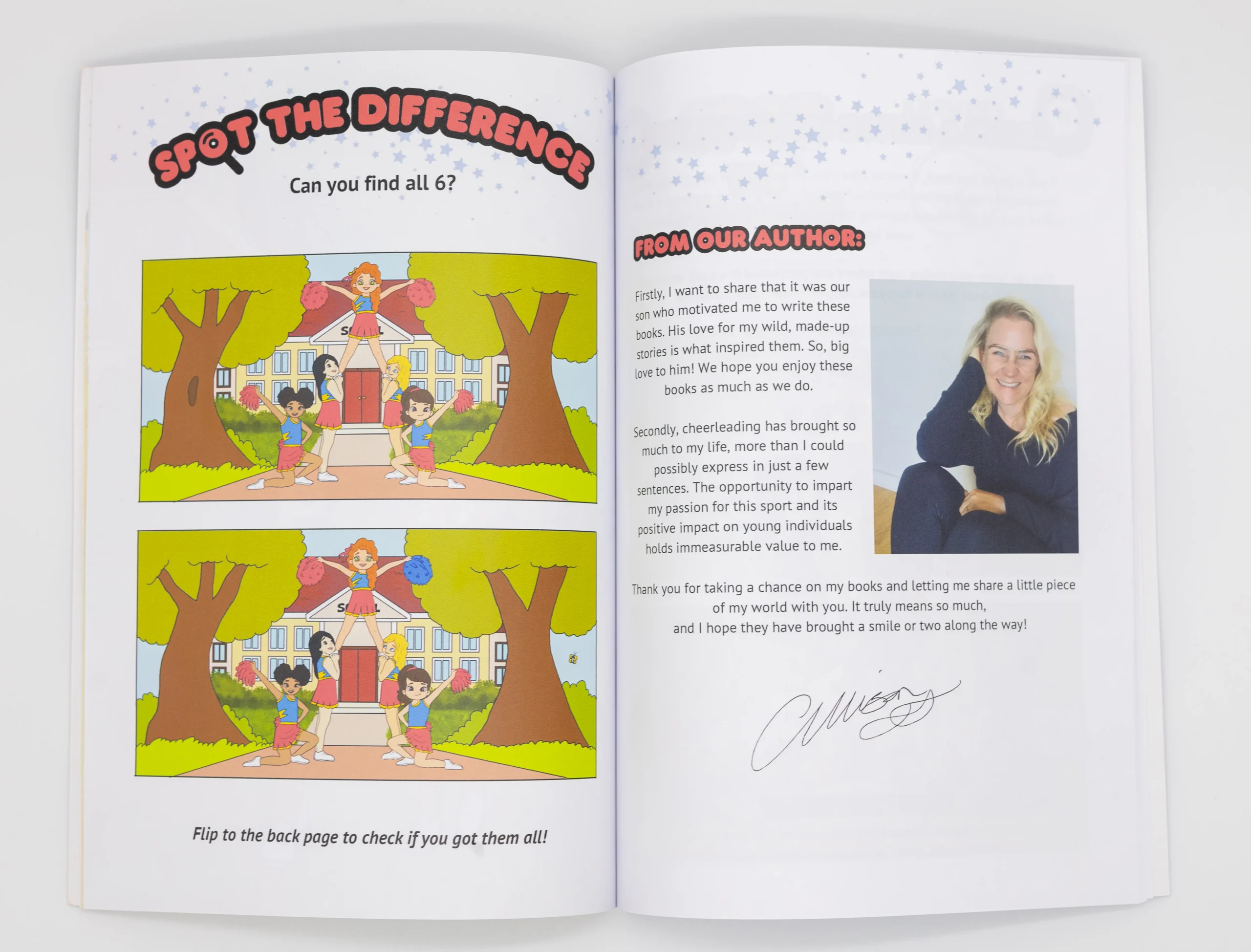 Extras: Spot the Difference game + Password access to The Secret Book Club with free downloadable cheer activities