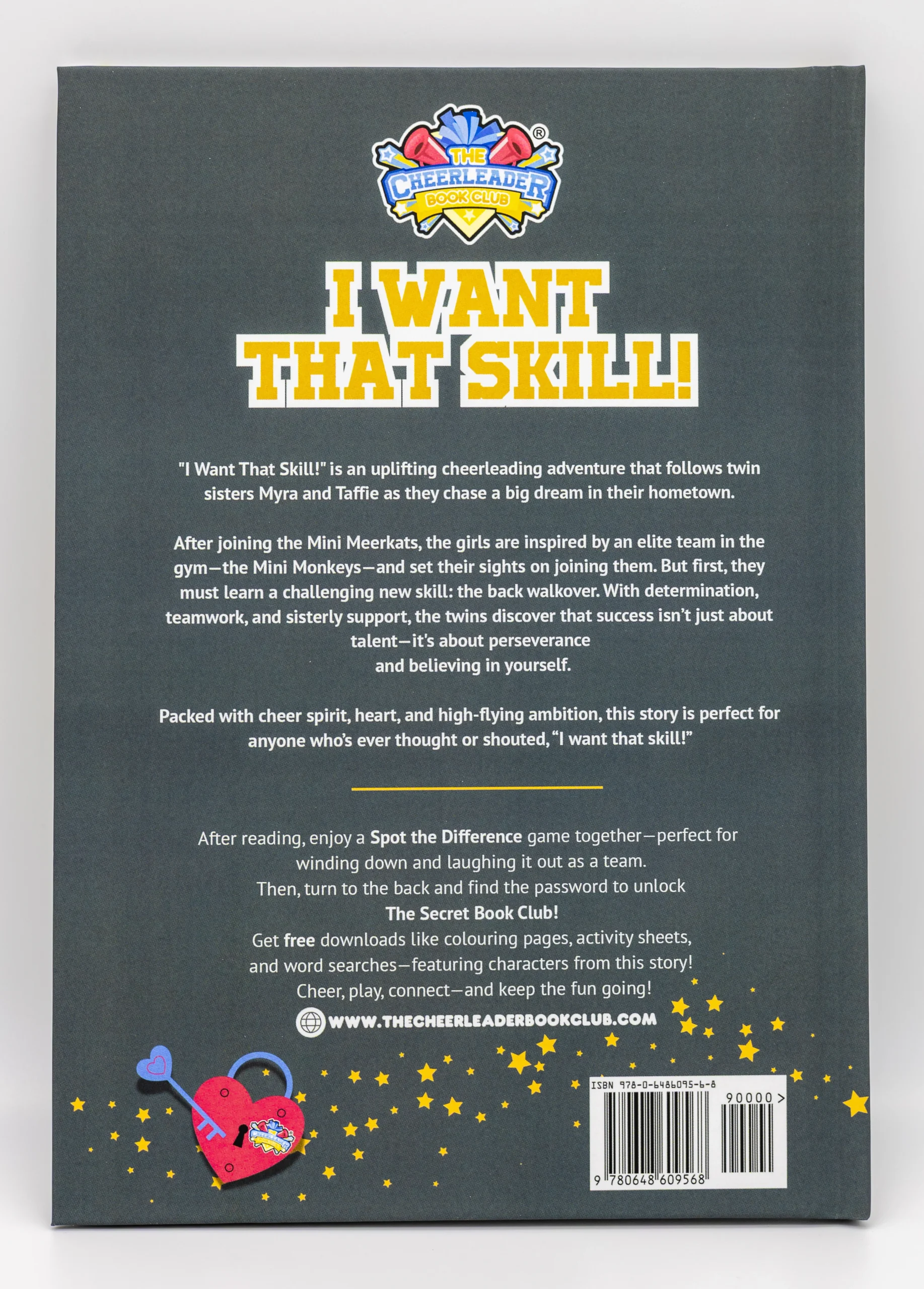 Join twin sisters Myra and Taffie as they tumble, stretch, and giggle their way through a cheerleading adventure in I Want That Skill!—a heartwarming story about setting goals, staying determined, and celebrating every step along the way.