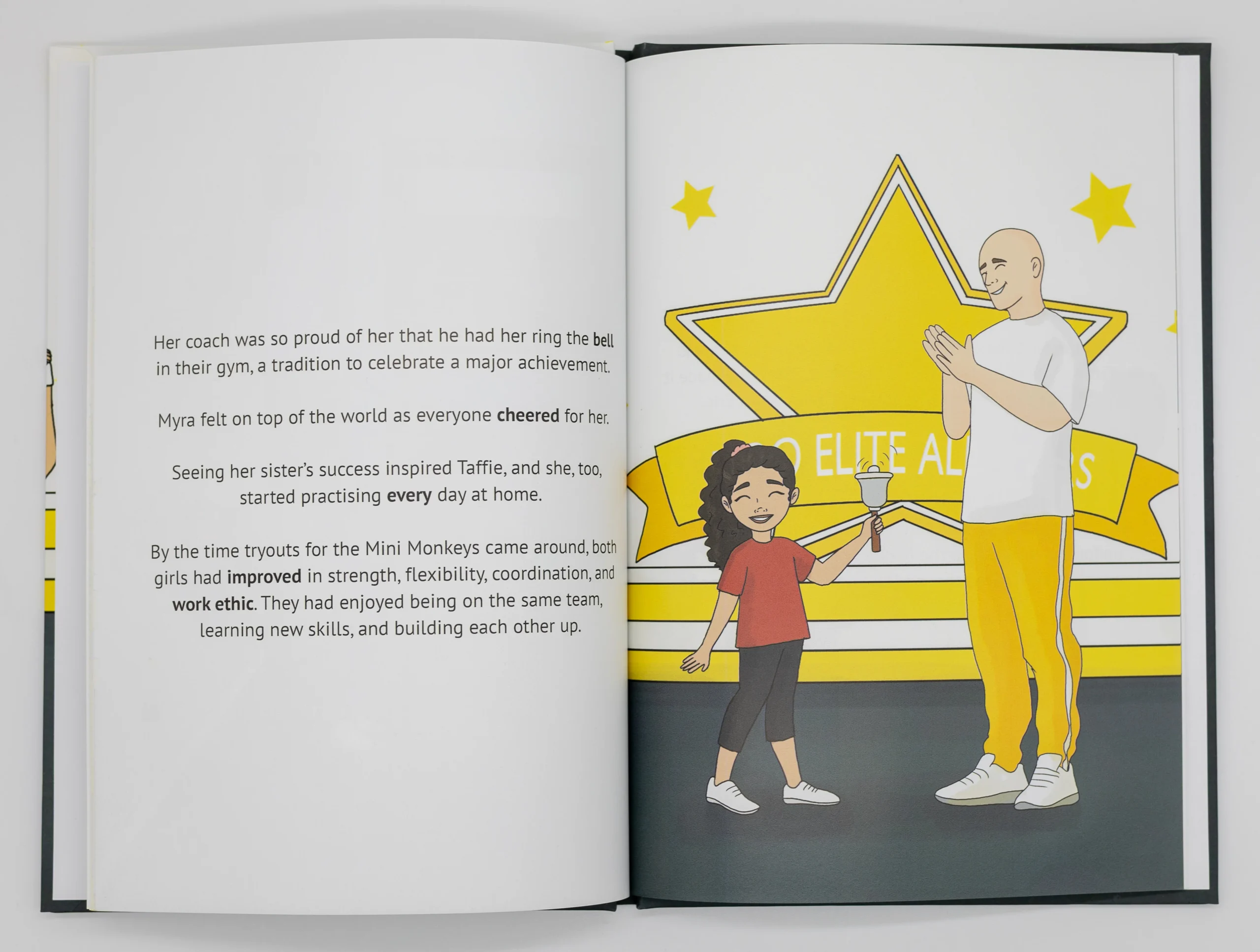 When the girls see their cousin Eric perform on the top team, they decide they want to be just like him. But to join his squad, they’ll need to master a tricky new skill—a back walkover! With plenty of encouragement, lots of practice, and a few sisterly surprises along the way, Myra and Taffie learn that achieving your dreams takes time, effort, and a little bit of courage.