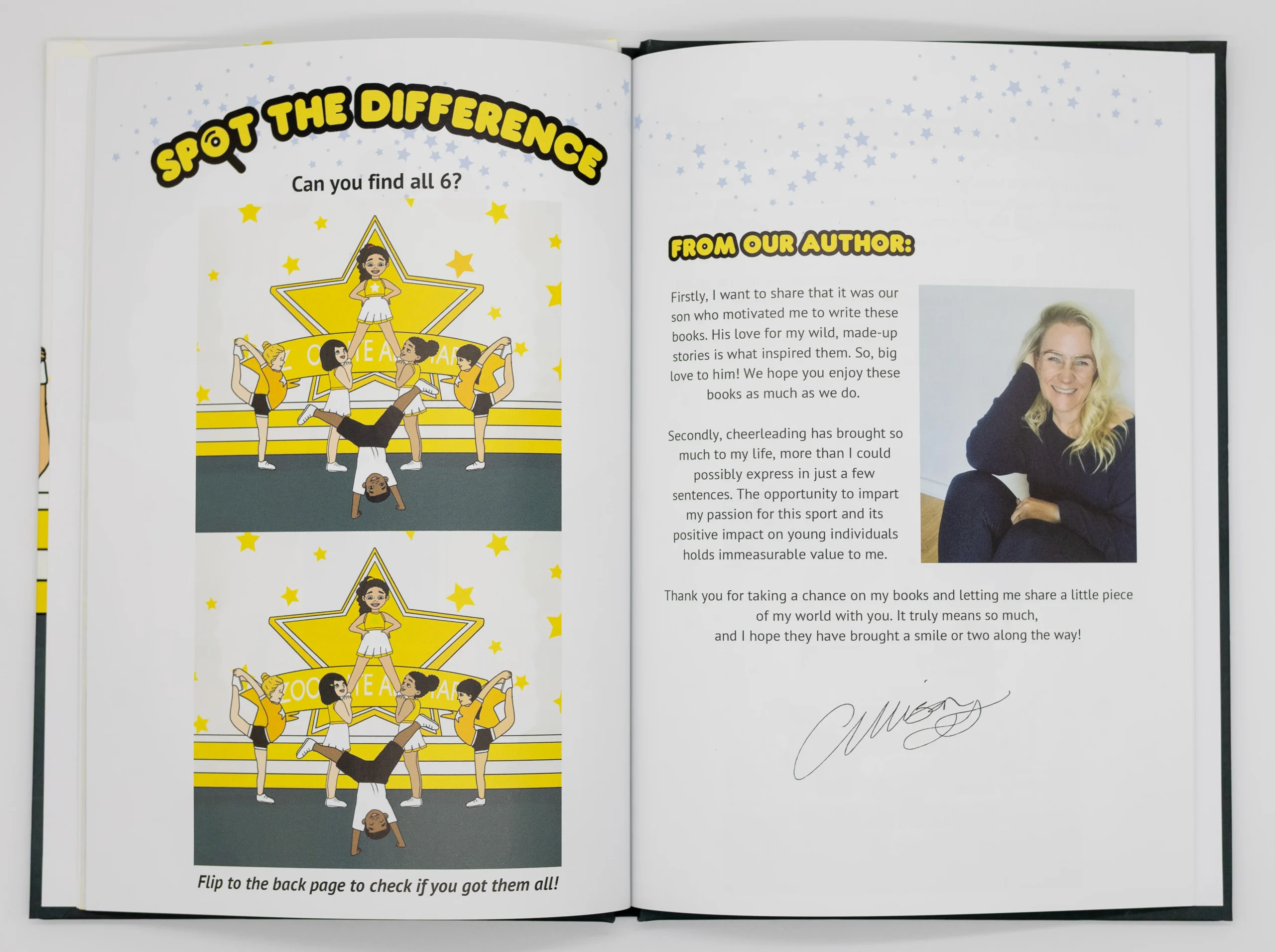 Extras: Spot the Difference game + Secret Book Club password for downloadable cheer activities